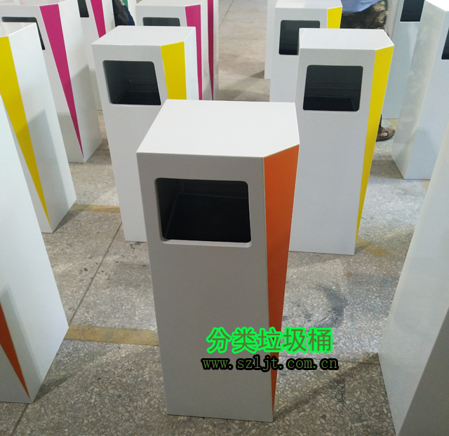 钢制垃圾桶跟不锈钢果皮箱很相似,都是金属材料。区别在于不锈钢垃圾桶往往采用其材质的本来颜色,而钢制果皮箱则会烤漆电镀上一层其他的颜色,其色彩多样化的特点,让它能广泛应用于多种场景。